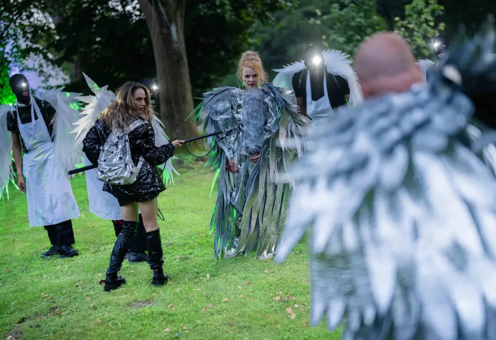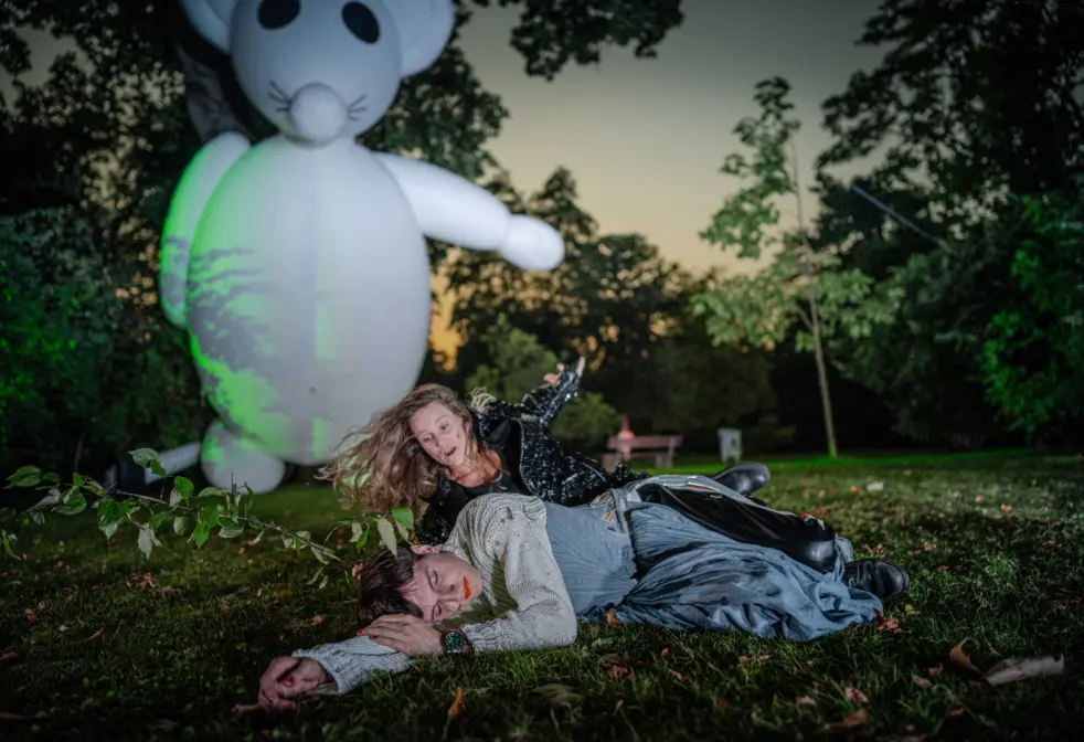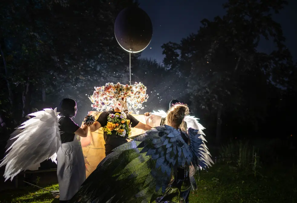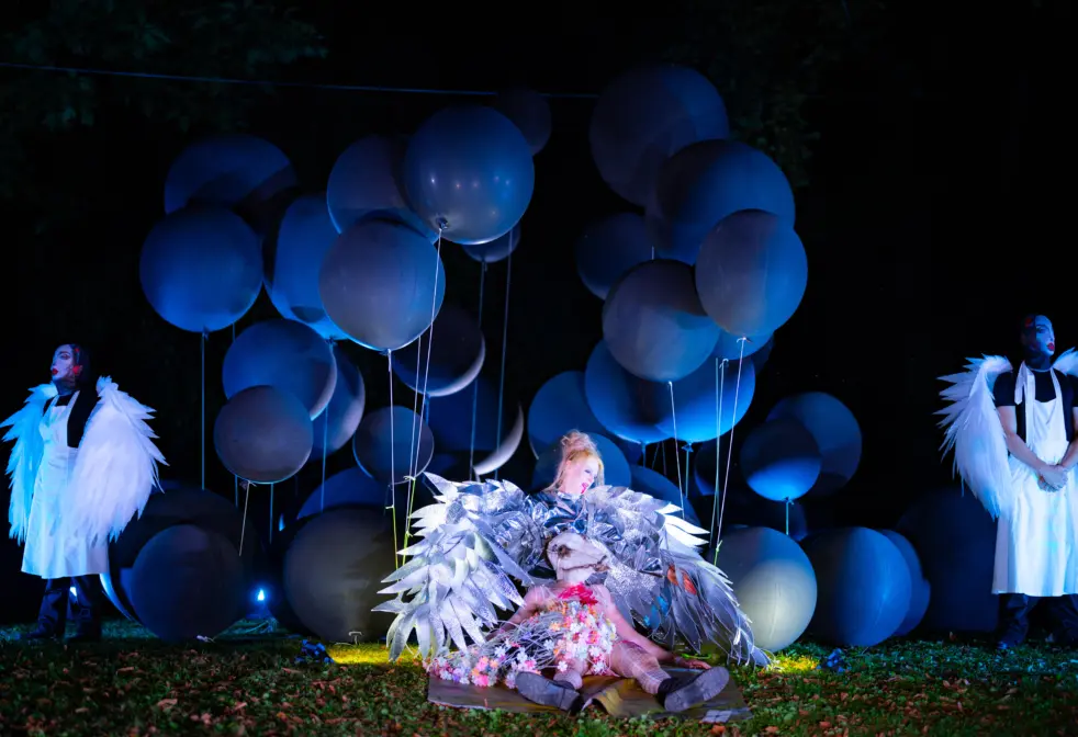 Als Eröffnungspremiere der Spielzeit 2024/25 wird die bekannteste Komödie von William Shakespeare EIN SOMMERNACHTSTRAUM gespielt. Ulrich Grebs Inszenierung ist in mehrfacher Hinsicht besonders. Erstmals steht das Schauspielensemble gemeinsam mit Mitgliedern des Jungen Ensembles auf der Bühne. Zudem finden die Aufführungen sowohl im Schloss als auch im von Birgit Angele gestalteten Schlosspark statt und nutzen mit dem Einbruch der Dämmerung die „blaue Stunde“, die die märchenhafte Atmosphäre des Stücks unterstreicht. Die Zusammenarbeit von professionellen Schauspieler*innen mit Laien aus dem Jungen Ensemble war ein zentraler Aspekt der Produktion und förderte den Austausch zwischen erfahrenen und jungen Künstler*innen. Die maßgeblich von ENNI sowie der Sparkasse am Niederrhein geförderte und vom Förderverein Freunde des Schlosstheaters e.V. sowie dem Lions Club Moers unterstützte Produktion war ein gelungener und vom Publikum begeistert aufgenommener Spielzeitauftakt und zeigte einmal mehr die Vielseitigkeit und das kreative Potential des STM.