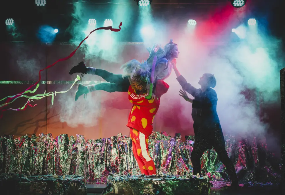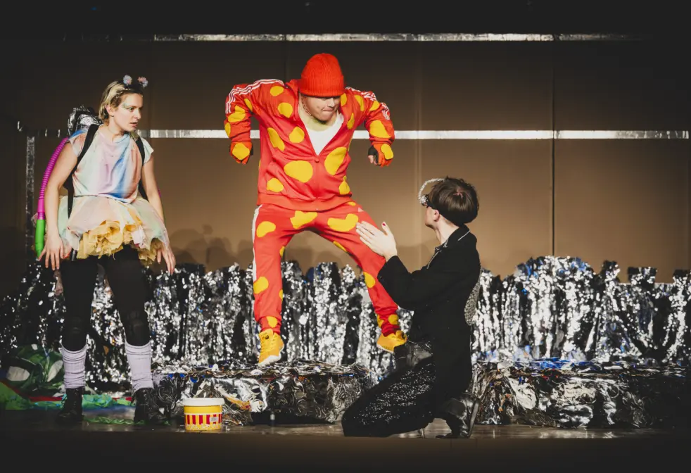 Das Kinder- und Familienstück wird erneut von Kathrin Leneke, der Leiterin des Jungen Schlosstheater, inszeniert. ES RAPPELT IM KARTON, ein Theaterstück von Dita Zipfel und Finn-Ole Heinrich, erzählt die Geschichte einer Leuchtkäferin, die trotz der natürlichen Gegebenheiten fliegen lernen möchte, und ihrem Freund, einem Frosch, der beschließt, Vegetarier zu werden. Zusammen mit einer Fliege finden sie sich eingesperrt in einem Karton wieder und hinterfragen dabei die Regeln der Natur. Die Aufführung findet zum ersten Mal im Bollwerk 107 statt, da das St. Barbara Jugendheim in Meerbeck abgerissen werden soll. Der große Bühnenraum bietet einen idealen Rahmen für den von Ausstatterin Sandra Linde liebevoll gestalteten riesigen Pappkarton. Zusammen mit den Aufführungen im Januar 2025 wird das Familienstück wieder einen Publikumsrekord erzielen. Es zeigt sich, dass gerade im Kinder- und Jugendbereich durch eine Erweiterung der Platzkapazität die Reichweite des Theaters deutlich erweitert werden kann.